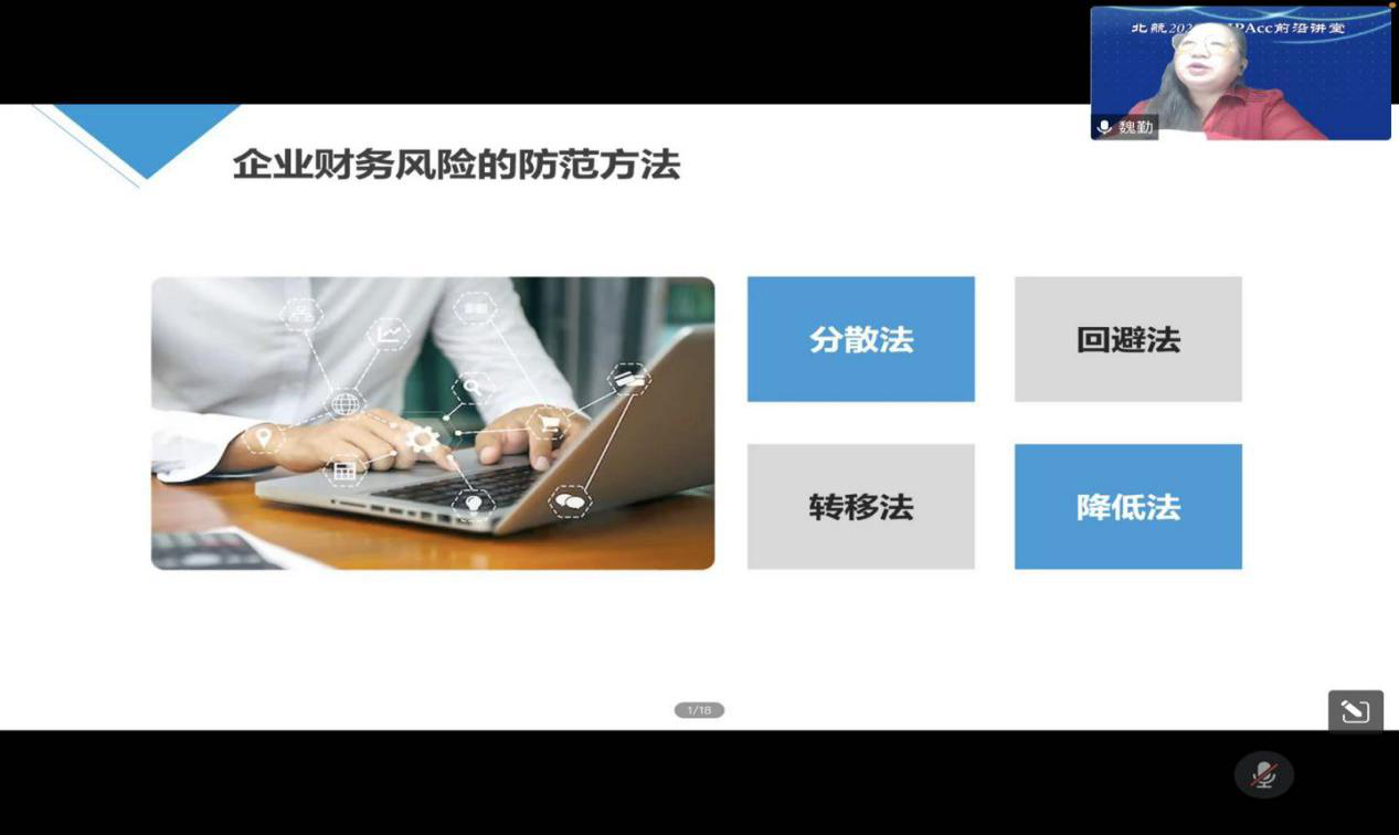 首先,她对企业风险管理的四类标准进行了介绍,随后对企业通常所存在的财务风险进行了详细讲解。企业财务风险主要包含筹资风险、投资风险、经营风险、存货风险、税务风险。财务风险的成因通常来自于宏观环境的复杂多变,内部管理的架构失衡,风险防范的意识缺乏,财务决策缺乏严谨,以及企业应对财务风险的方法不当。