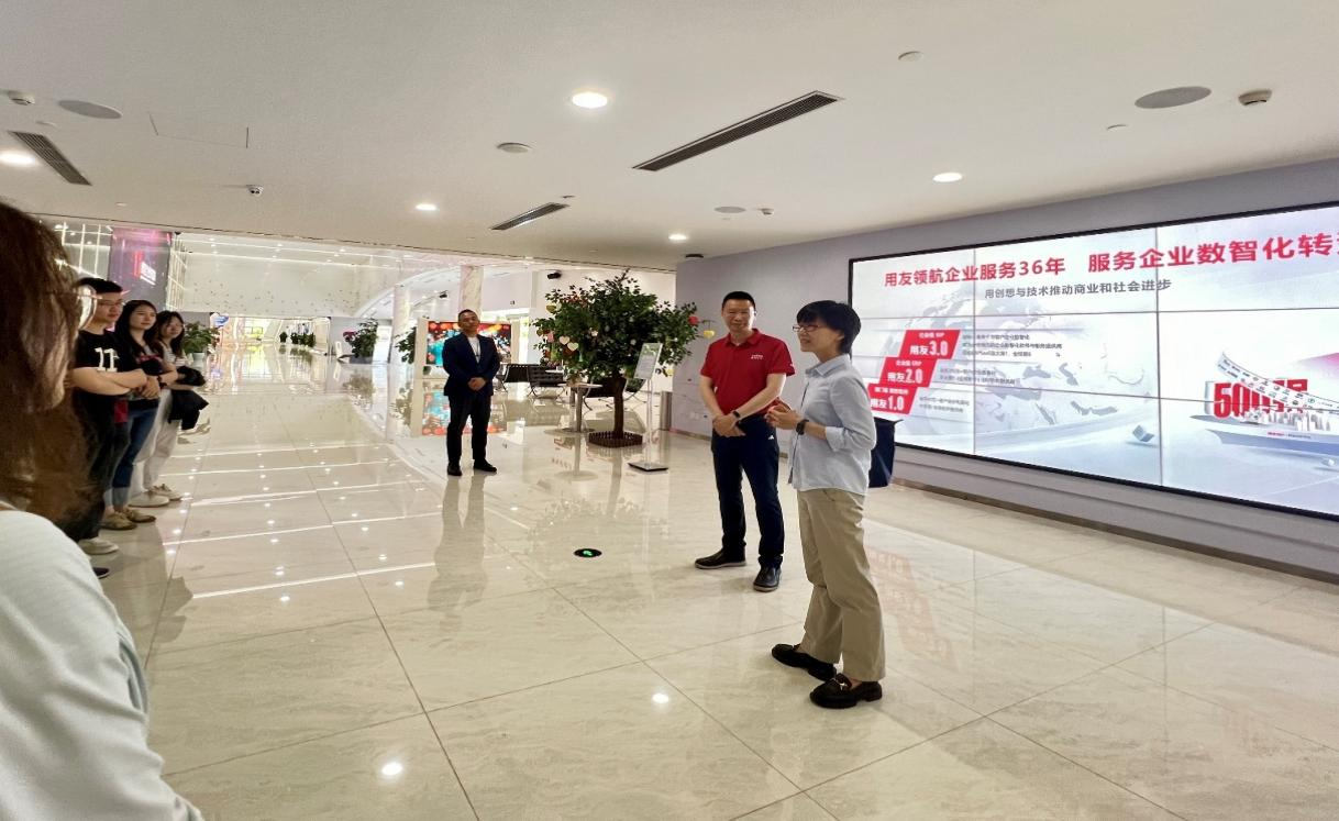 活动最后,白明老师进行总结发言,她表示很高兴能够来到用友集团参访,看到用友在推进企业数智化进程中的探索经验和实践成果,对企业商业创新的未来与商业发展都是非常大的启发,同时鼓励同学们要认真学习、深入思考,将所学知识运用到未来的学习和工作中去。